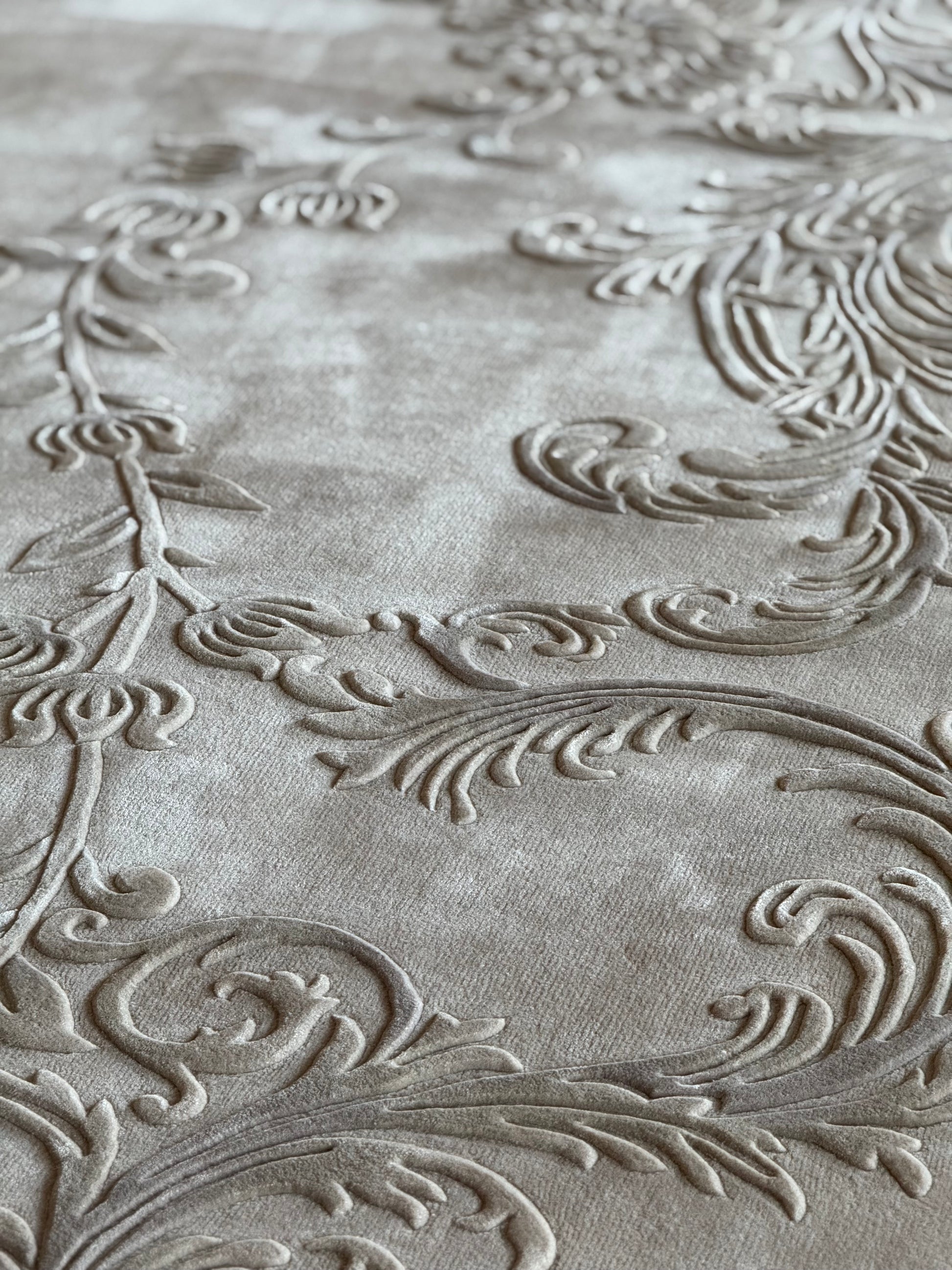A refined fusion of Baroque artistry and modern minimalism, Lin showcases stylized scrolls and florals in soft neutral tones. Its intricate detailing, paired with a clean, contemporary aesthetic, offers a quiet nod to history—perfect for interiors that embrace timeless elegance with a modern edge.
