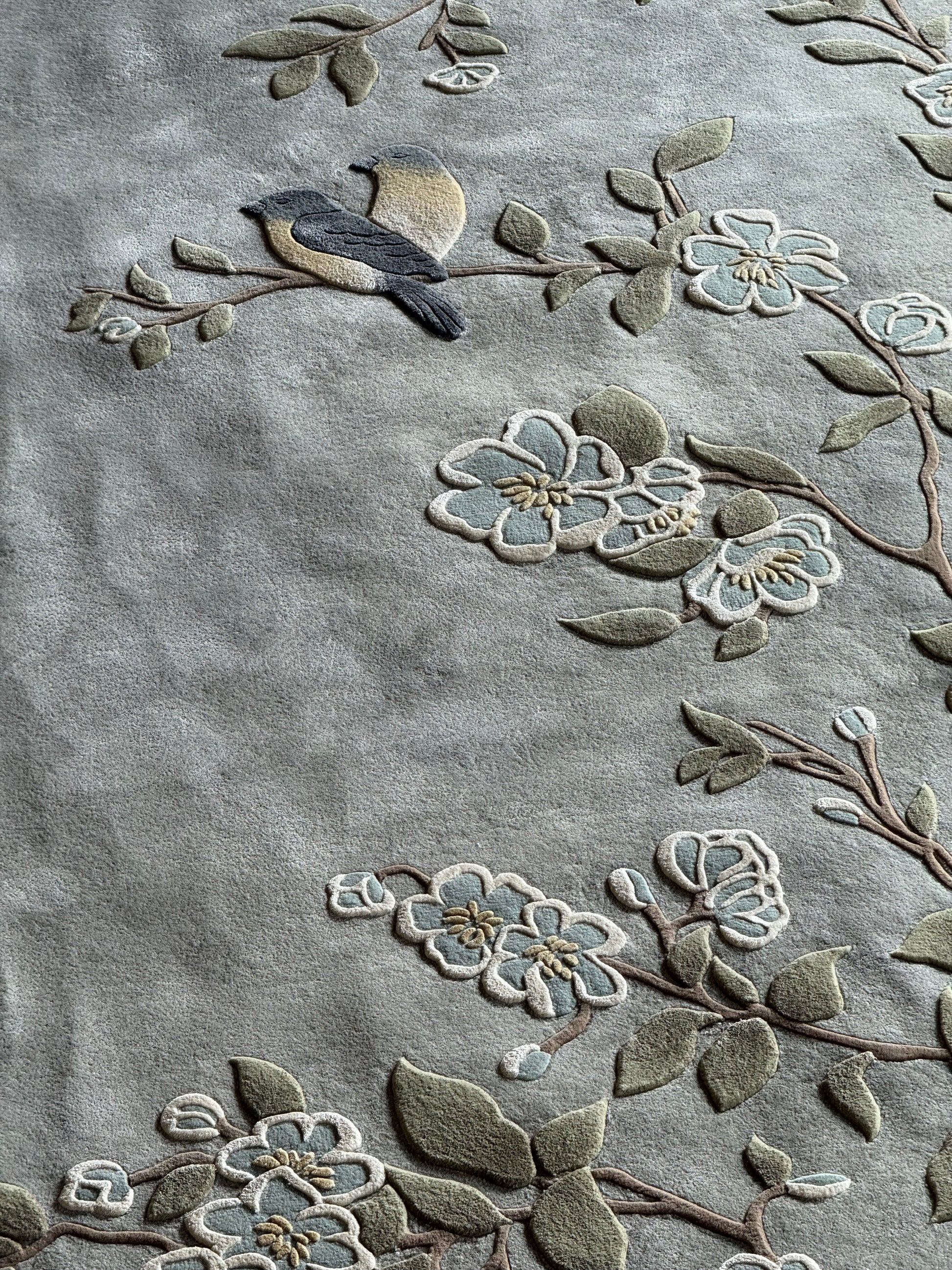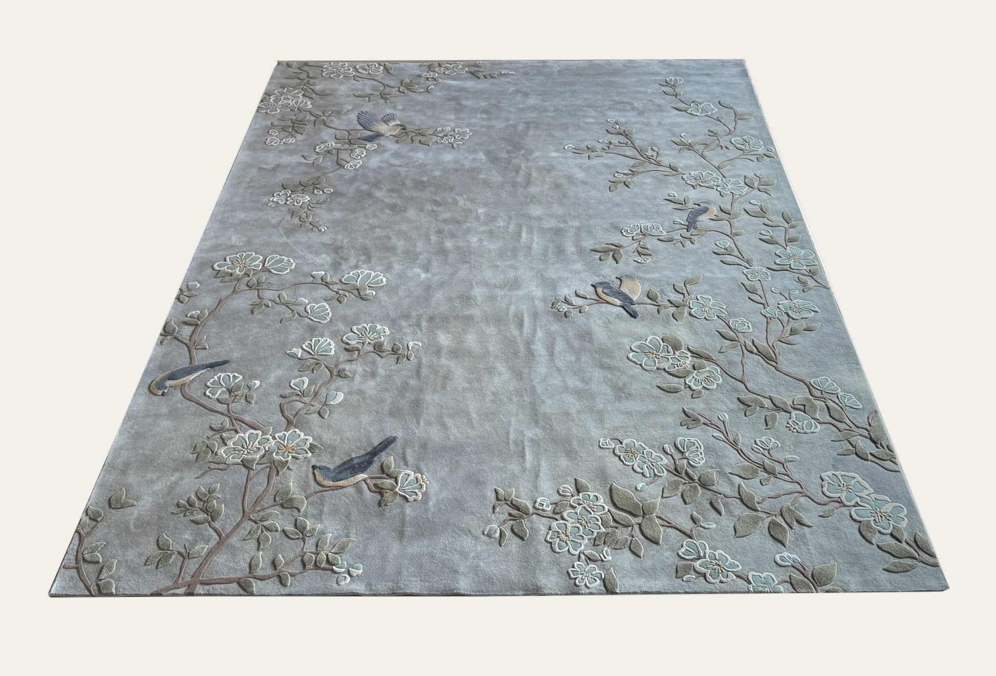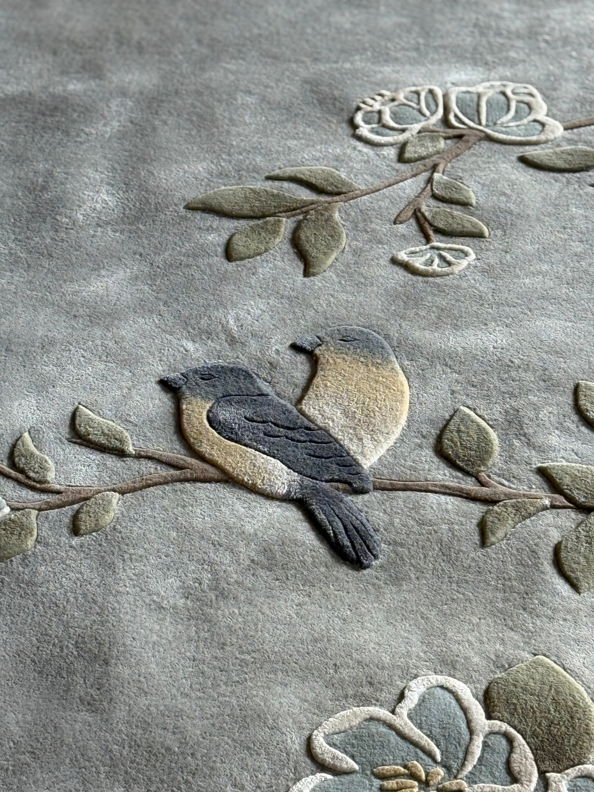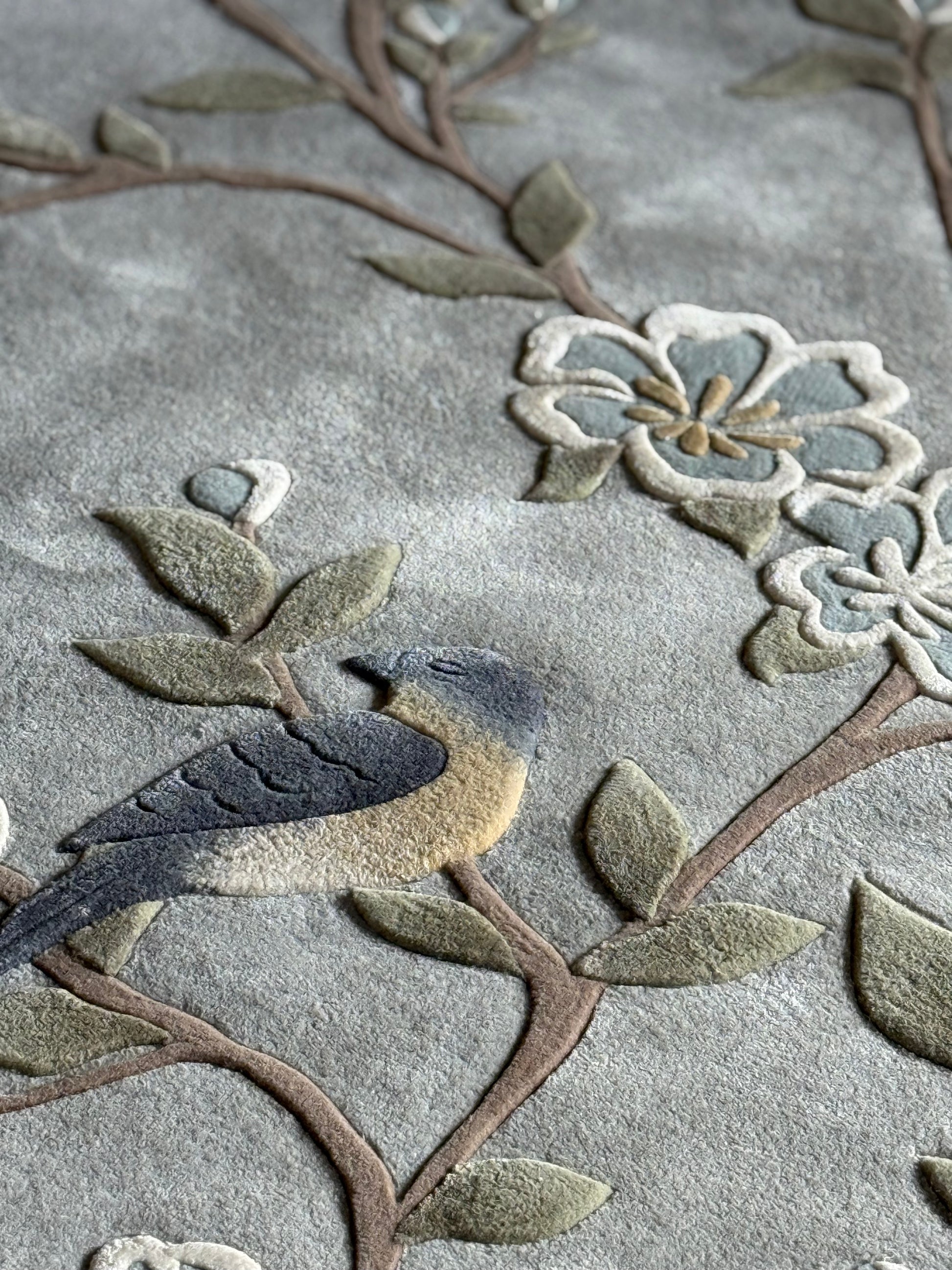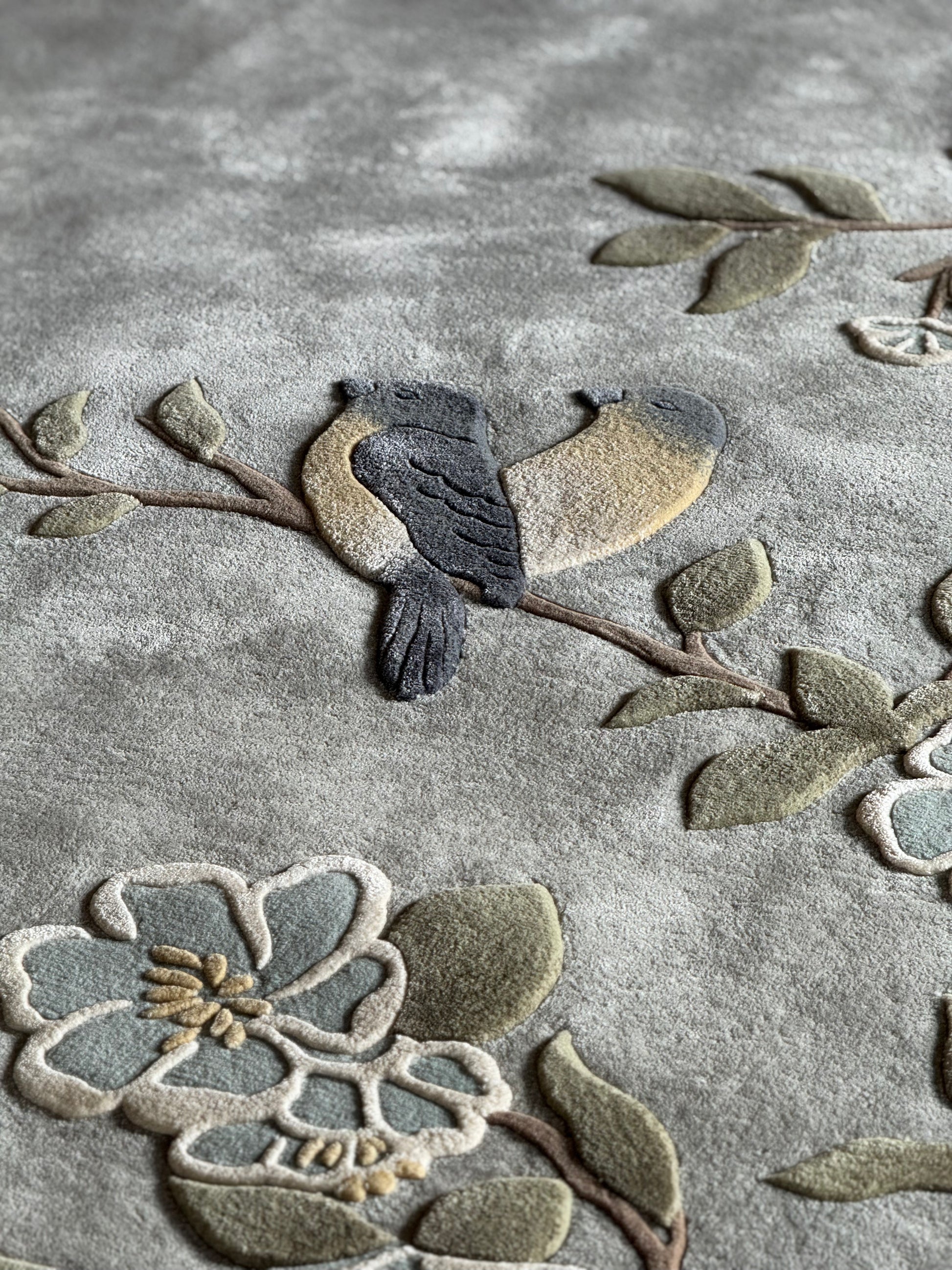 Zia 2.0 captures the tranquility of a serene garden, blending soft green tones, delicate florals, and whimsical birds. With its gentle palette and graceful composition, this design brings a refined yet inviting charm, ideal for modern classic spaces seeking a touch of nature’s elegance.
