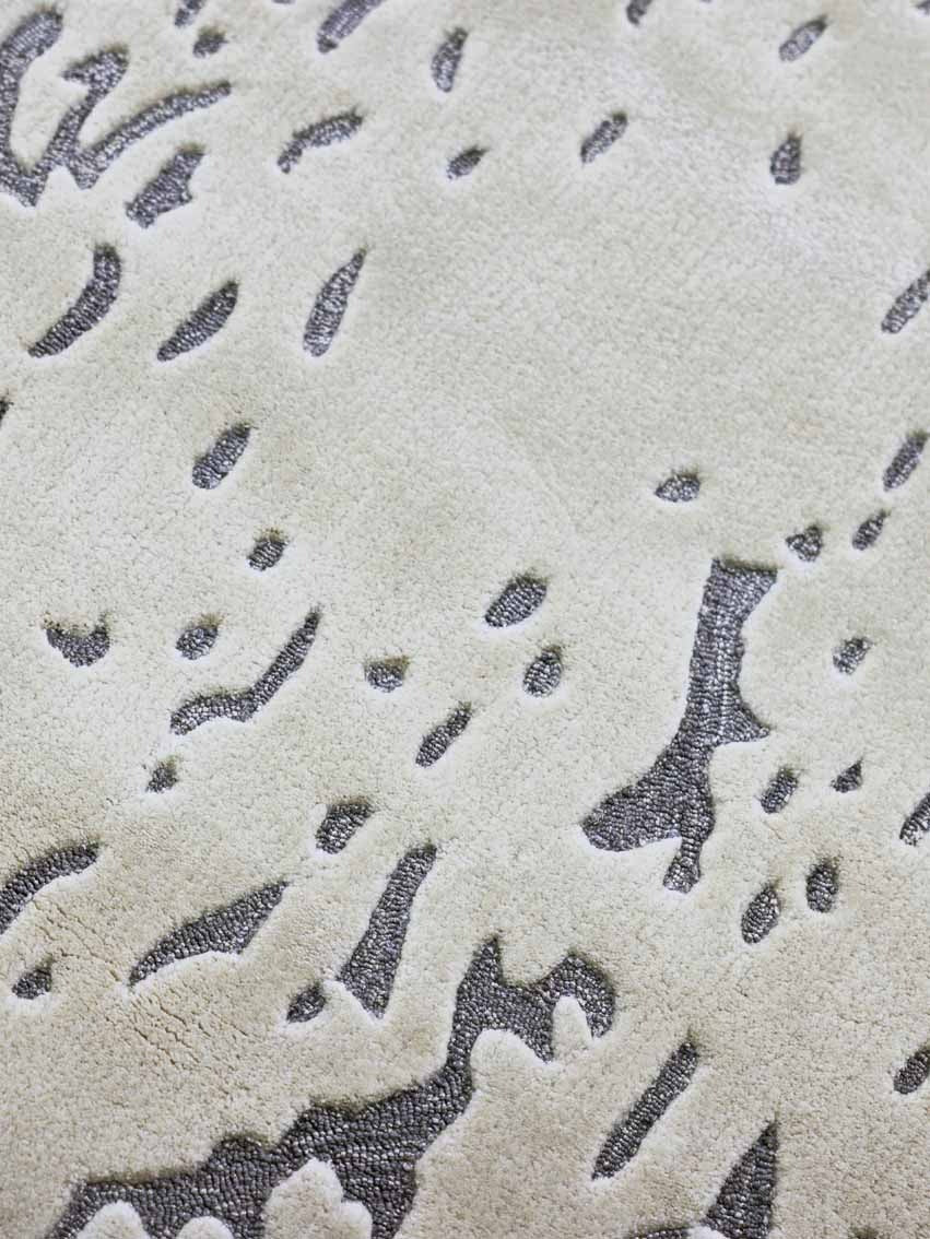 غير تقليدية ومتطورة وفنية وأنيقة. السجادة ذات الحافة الدائرية عبارة عن لعبة من الوبر المقطوع والوبر الحلقي، تم وضعها بطريقة تضيف اللون والهدوء والشخصية والرقي في نفس الوقت.