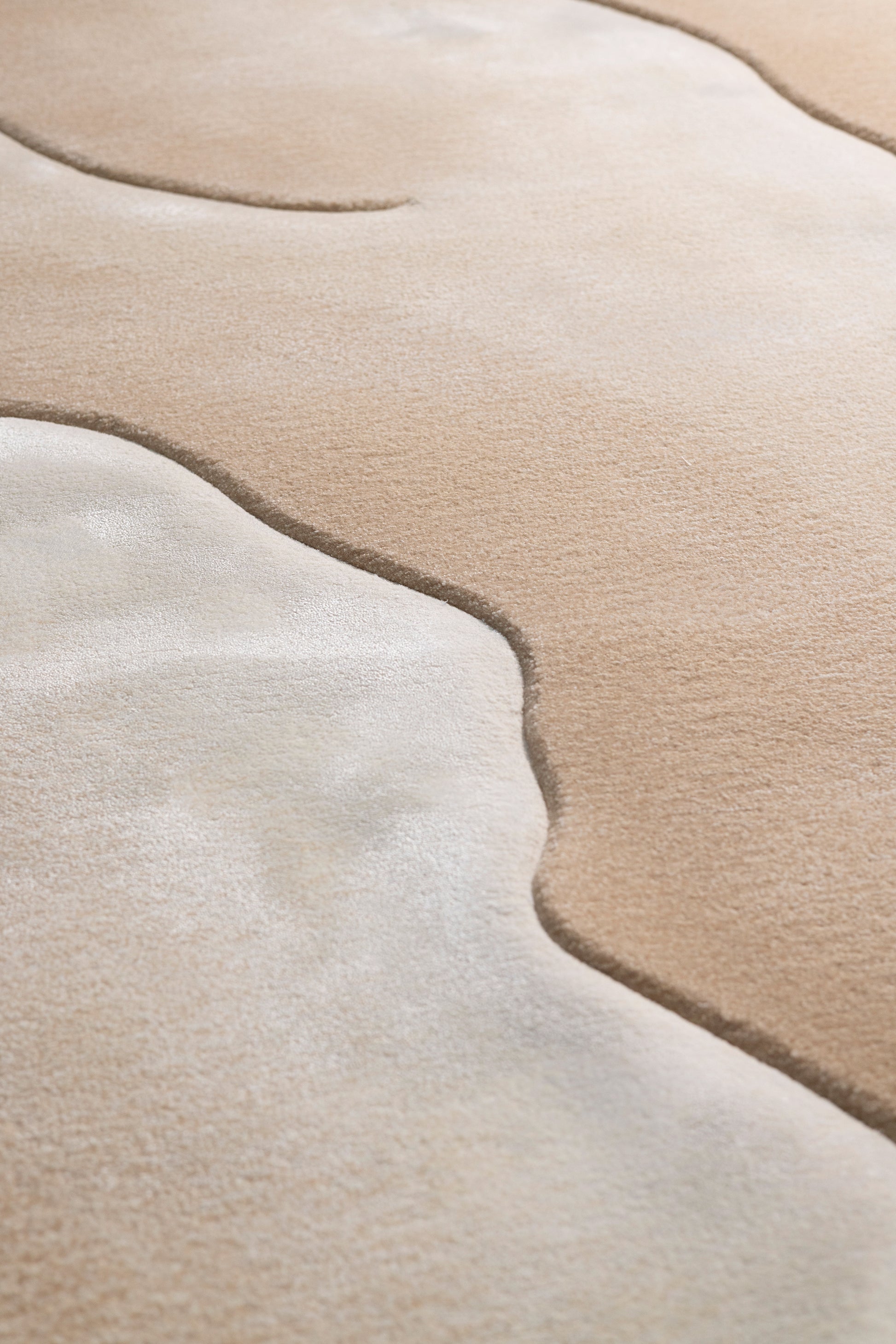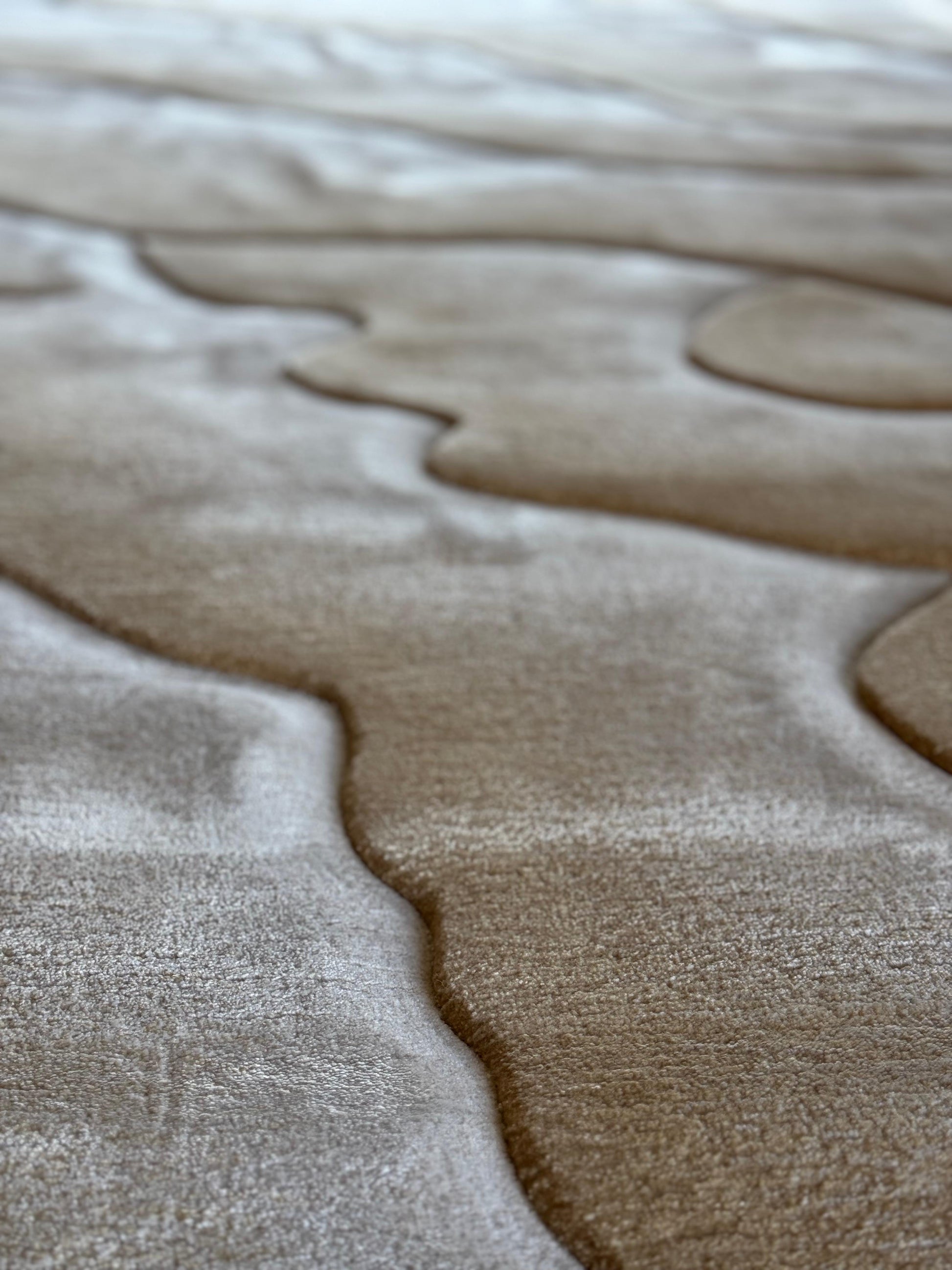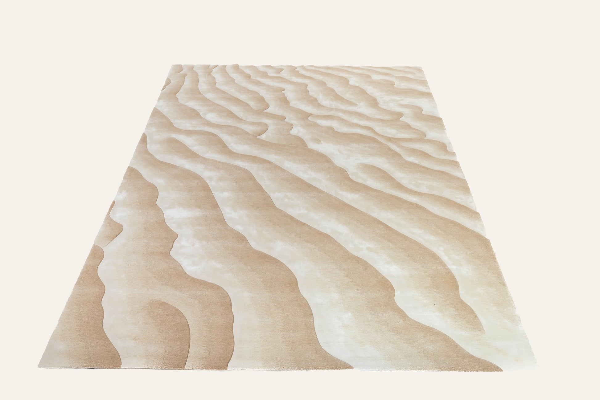 Inspired by the mounts and folds of sand, this carpet is an ode to all those lovely experiences of the Middle East that center around the dessert ;transforming it’s vast stretches, depth & far reaching impact, into a thing of beauty.