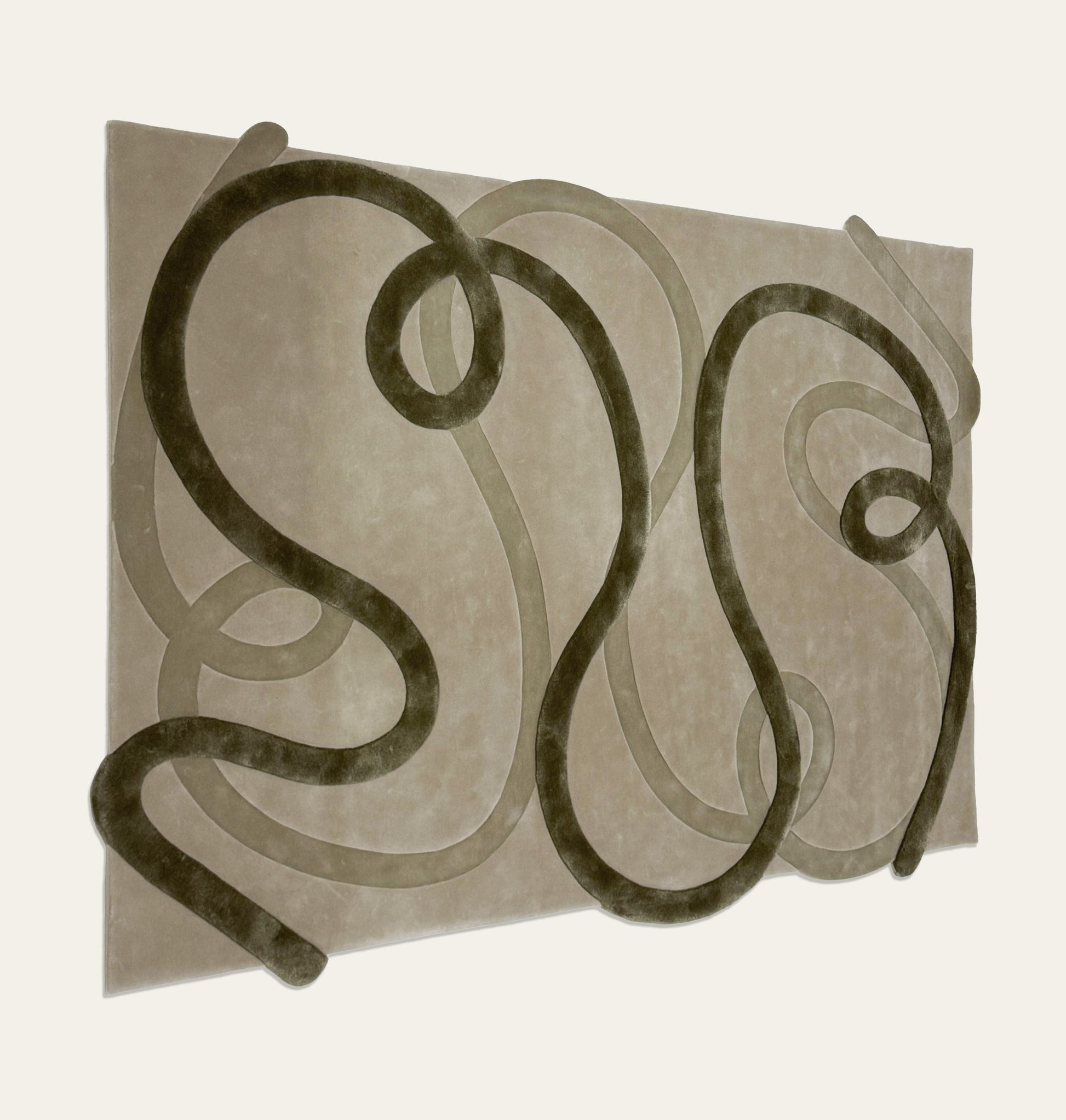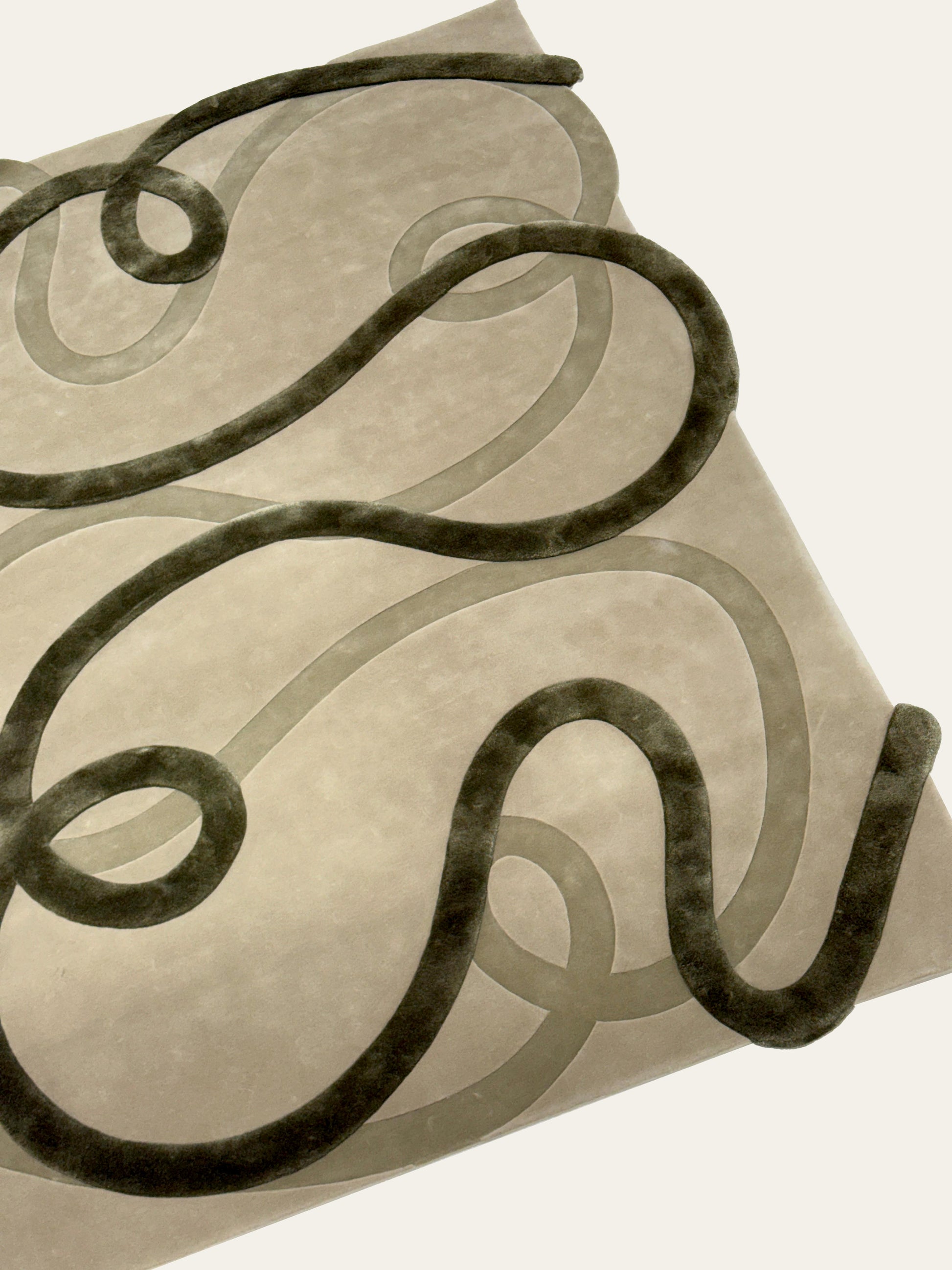 Vibrant, off-shaped forms mimic the spontaneity of creative strokes , layered in fine textures to add joy and verve to an interior setting. Squiggle is one of those carpets that will always stand bold and promise a mesmerizing visual experience.