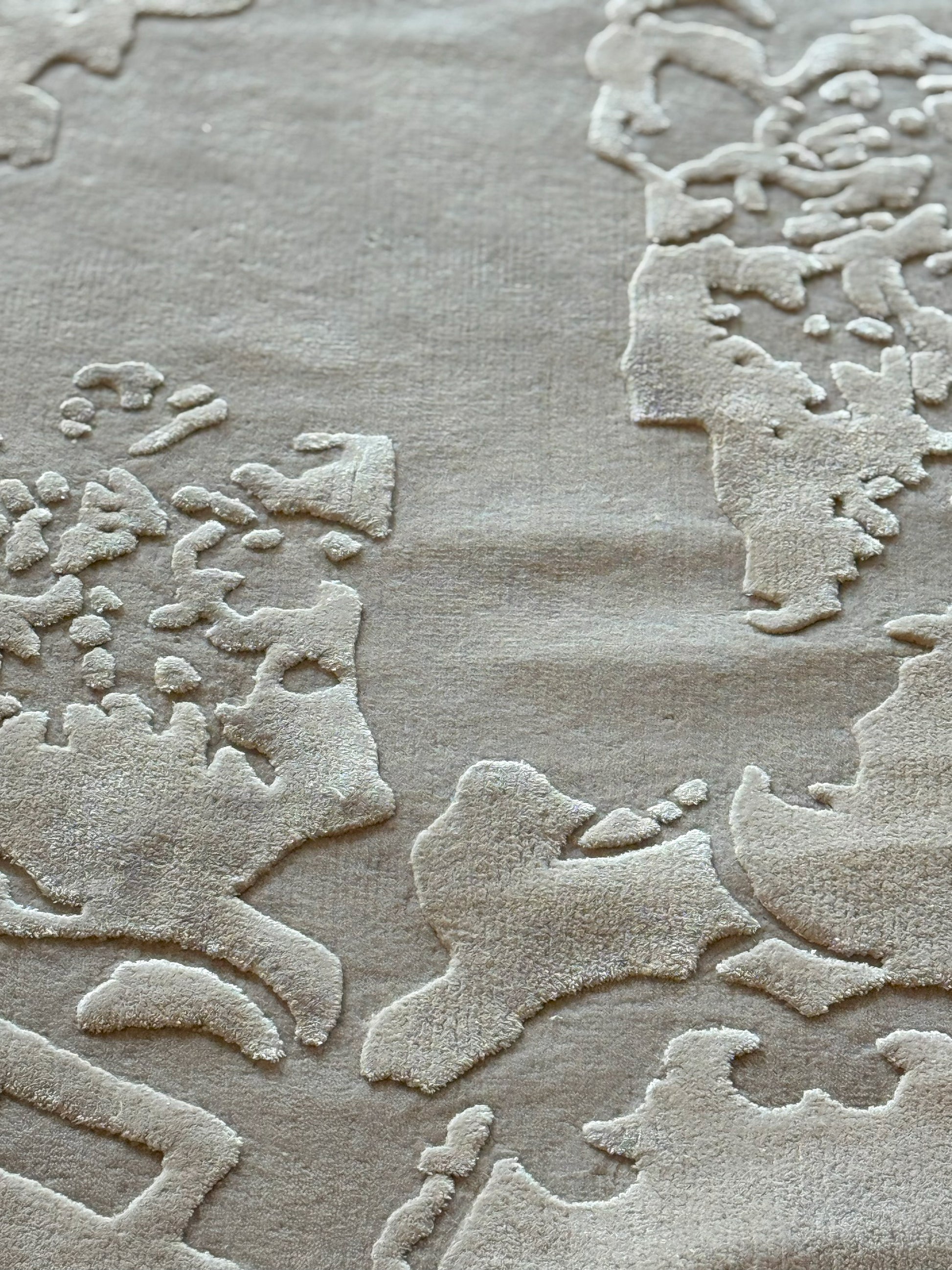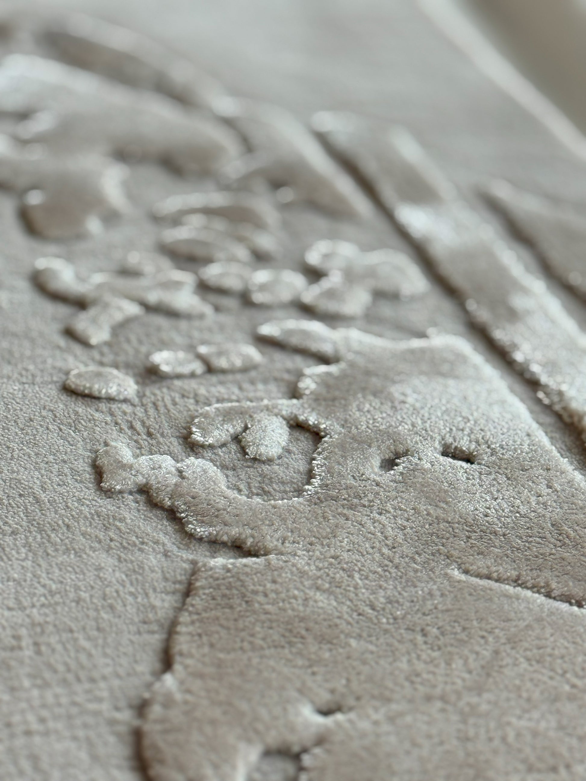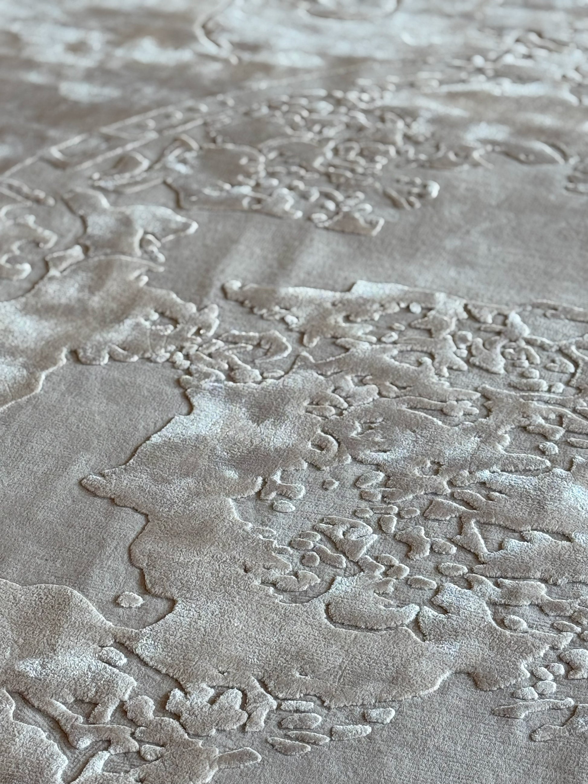 Turath is a tribute to the beauty of timeworn heritage. Inspired by ornate Baroque patterns softened by age, its design reveals delicate motifs that fade and reappear like memories—distressed in places, rich in others. This patchwork of presence and absence creates a layered elegance, bringing depth, nostalgia, and quiet grandeur to any space.