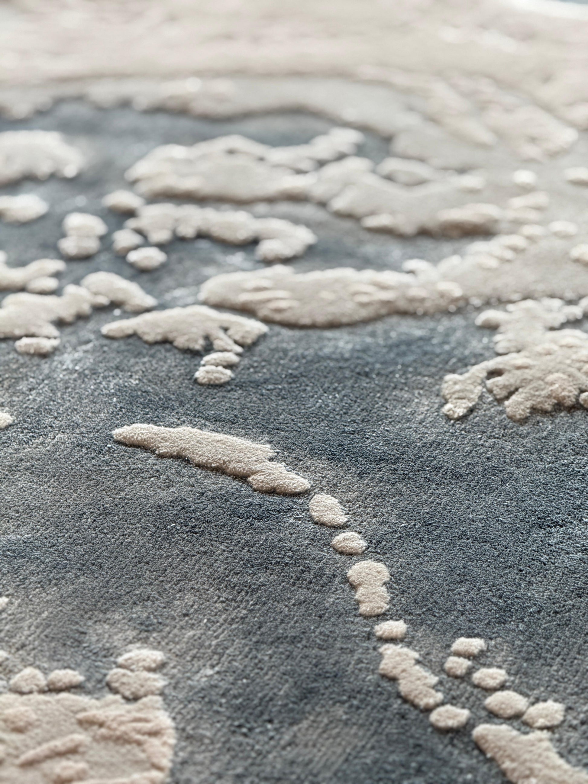 Deep royal purples flow across the surface, intertwining with mangrove roots and serene wave-like forms, inspired by Qatar’s Purple Island and its historic dye-making heritage. Crafted with care and sustainability in mind, this design brings a harmonious blend of culture and elegance to living rooms, bedrooms, lounges, or as a striking wall-to-wall feature.